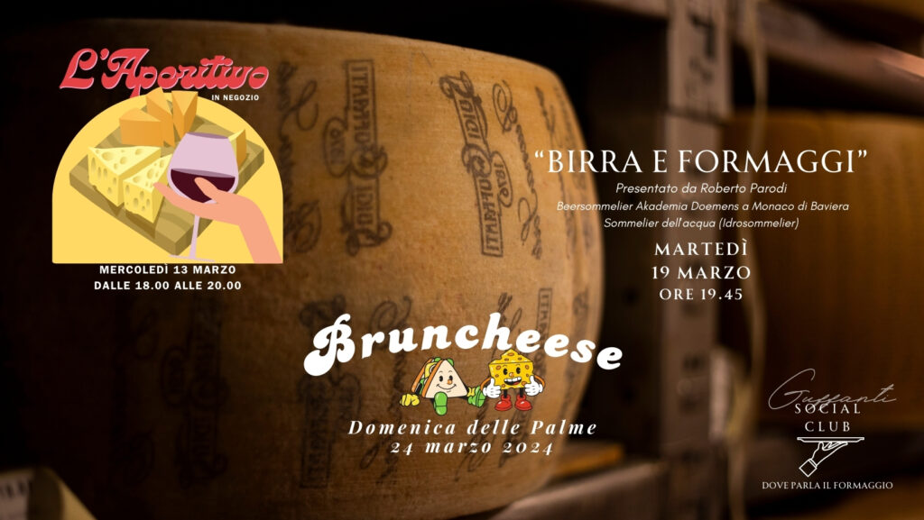 Bruncheese, domenica 24 marzo dalle 11.30 alle 13.30: in occasione della domenica delle Palme, Luigi Guffanti presenta la sua versione del brunch, dove avrete l’occasione di degustare i nostri formaggi. Euro 45 / persona.