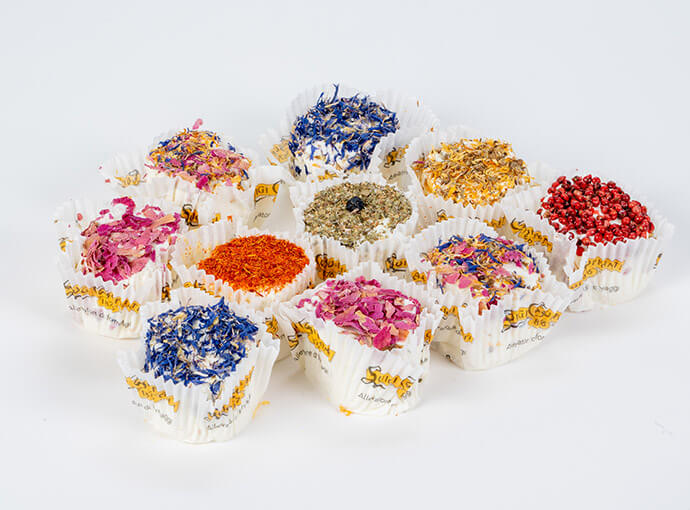 Questo caprino fresco artigianale si caratterizza per la sua coagulazione acida e la ricca aromatizzazione con una selezione di erbe e fiori profumati.