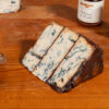 Pasta paglierina e compatta, con erborinatura bluastra moderatamente diffusa